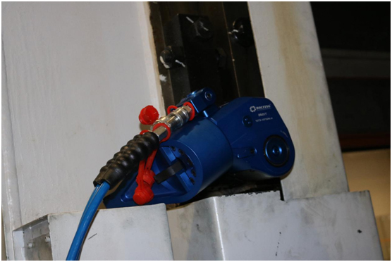 如下圖所示,此為我公司PE110系列液壓扭矩泵和10MXT系列液壓扭矩扳手,在緊固其螺栓時一次性成功,節(jié)約了檢修時間。